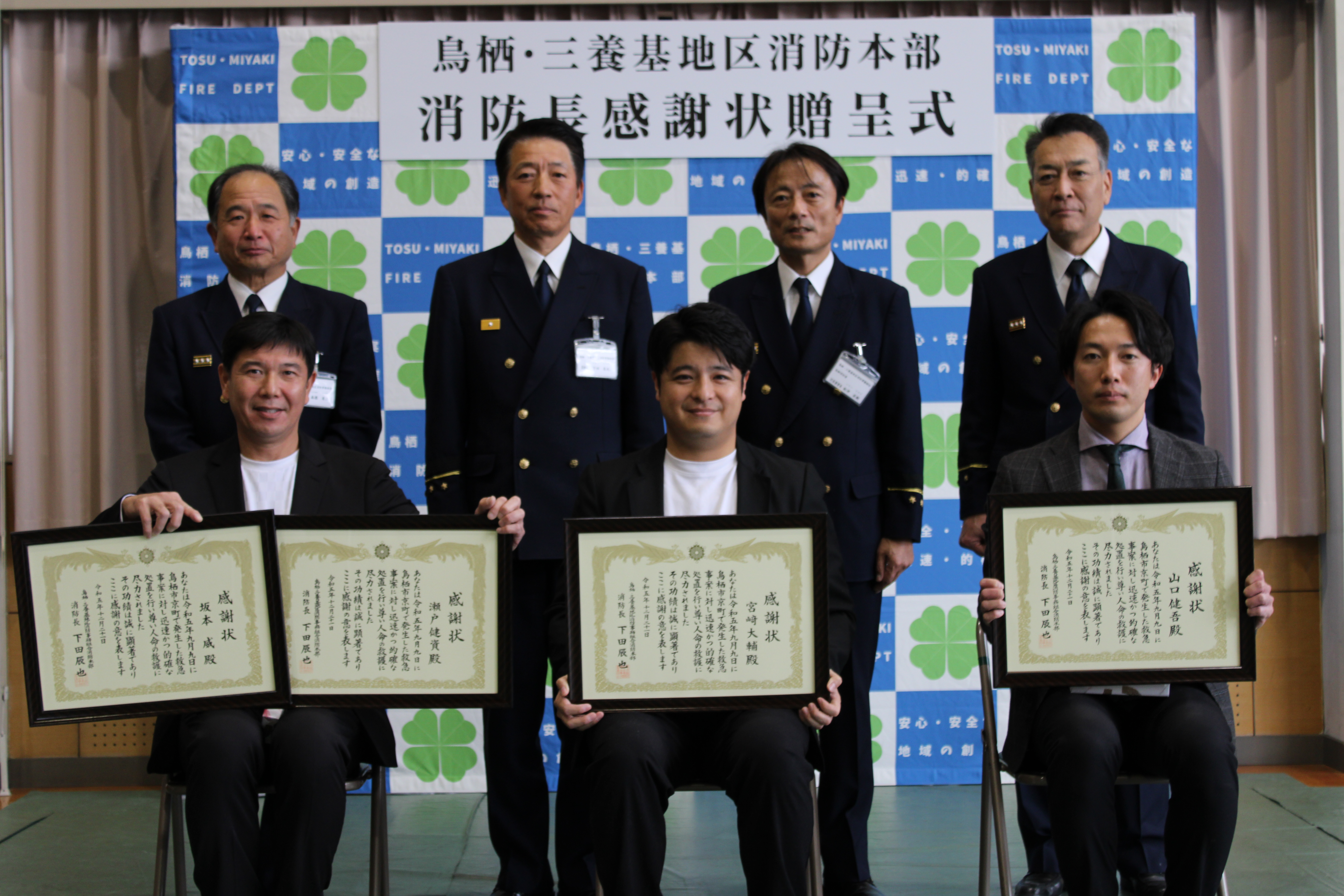 個人表彰:坂本 威 様 瀬戸 健資 様 宮﨑 大輔 様 山口 健吾 様