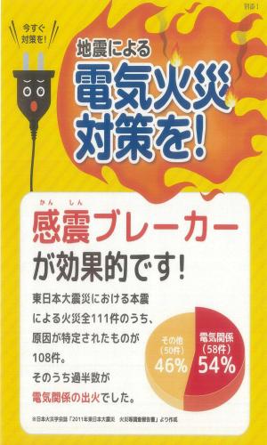 >地震による電気火災対策を!